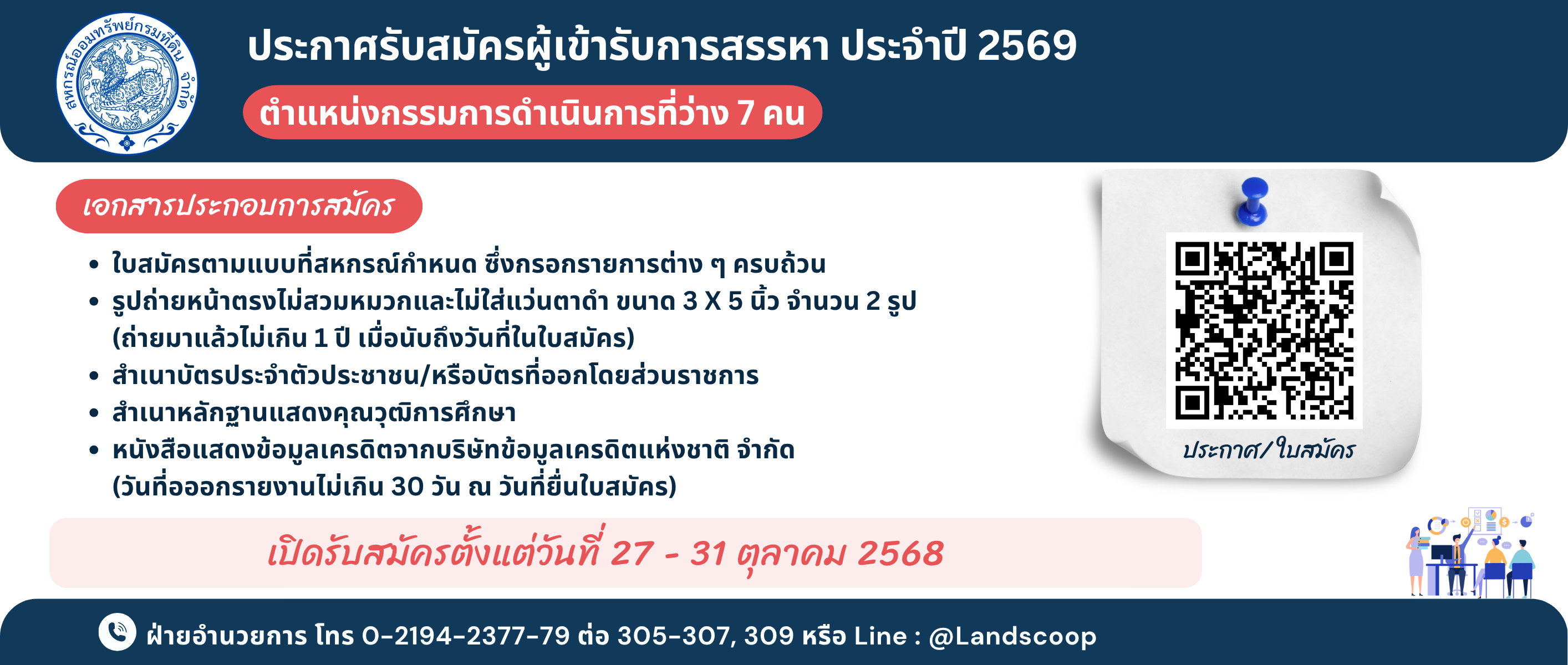 ประกาศสหกรณ์ออมทรัพย์กรมที่ดิน จำกัด เรื่อง โครงการกู้ยืมเงินสามัญดอกเบี้ยต่ำเพื่อจัดซื้อยานพาหนะ